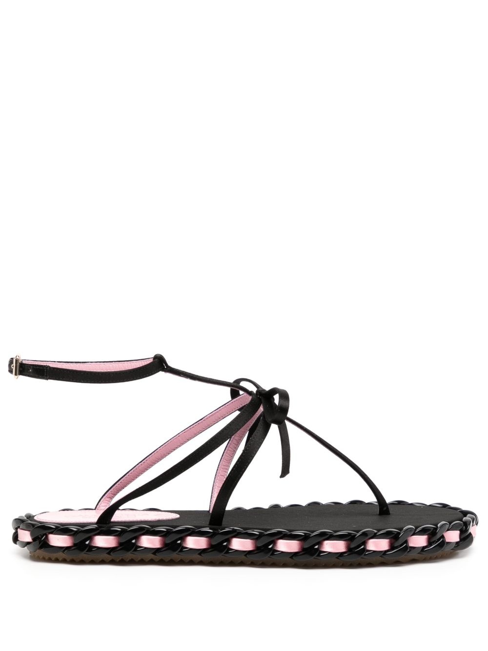 chain sandals Highlights - Black - Buckle-strap fastening - Branded footbed - Bow detailing Made in Italy Composition Sole: Rubber 100% Outer: Silk 100% Lining: Silk 50%, Leather 50%