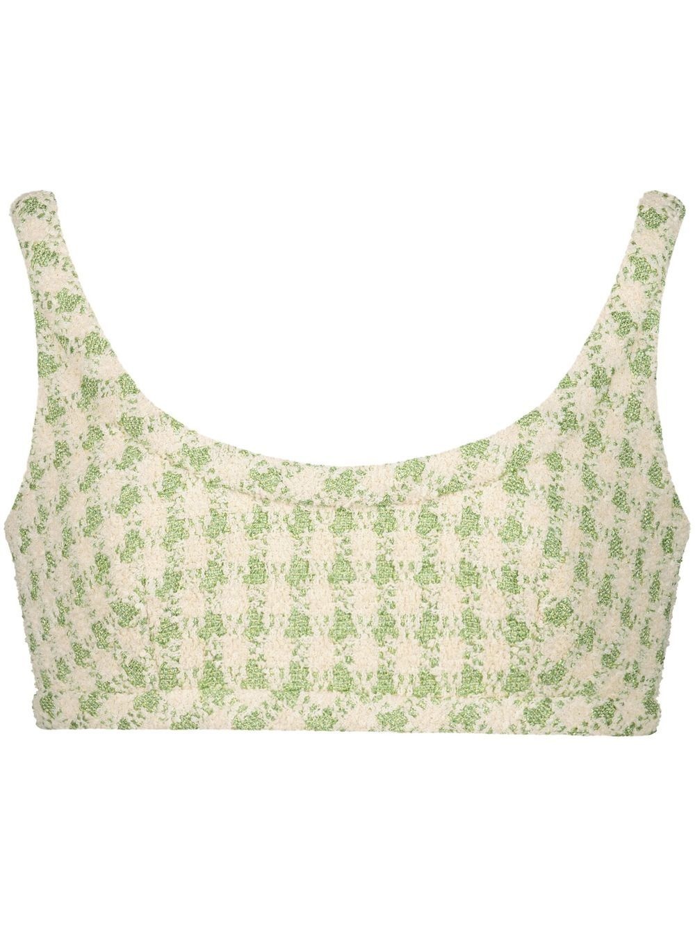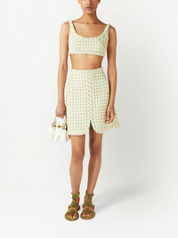 check-pattern tweed crop top Rendered in a pastel green and white check pattern, this tweed top is infused with Giambattista Valli's timeless aesthetic with a contemporary touch, as shown by its cropped length. Made in Italy Composition Top: Cotton 51%, Viscose 12%