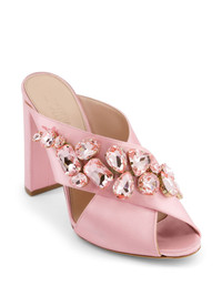 crystal-embellished mules Highlights - Light pink - High block heel Made in Italy Composition Lining: Leather 100% Sole: Calf Leather 100% Outer: Silk 100%