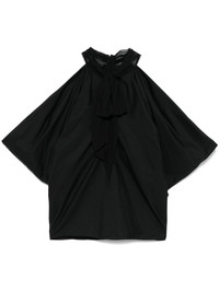 draped blouse Highlights - Black - Concealed rear hook and zip fastening - Halterneck tie fastening - Sleeveless Made in Italy Composition Cotton 100%, Silk 100% SIZE & FIT Model measurements Height 5 ft 10 in(1.79 m) Bust/Chest 31.88 in(81 cm) Hips 35.43 in(90 cm) Waist 23.62 in(60 cm) FittingInformation Designed to be unstructured, offering a loose fit throughout Made from a midweight non-stretch fabric
