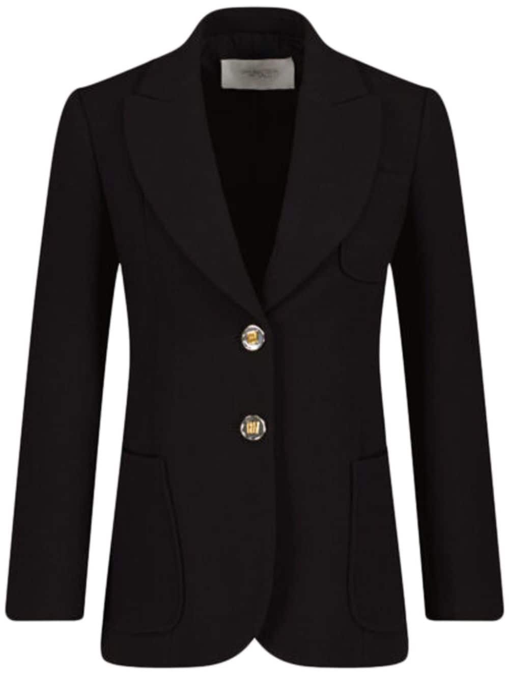 embossed-buttons single-breasted blazer Highlights - Black - Stretch-design - Logo-embossed buttons - Peak lapels - Front button fastening - Long sleeves - Chest patch pocket - Two front patch pockets Made in Italy Composition Viscose 97%, Elastane 3%