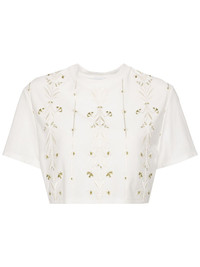 embroidered cotton croped top Highlights - White/green - Cotton - Embroidered design - Floral embroidery - Crew neck - Short sleeves - Straight hem Made in Italy Composition Cotton 100%