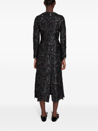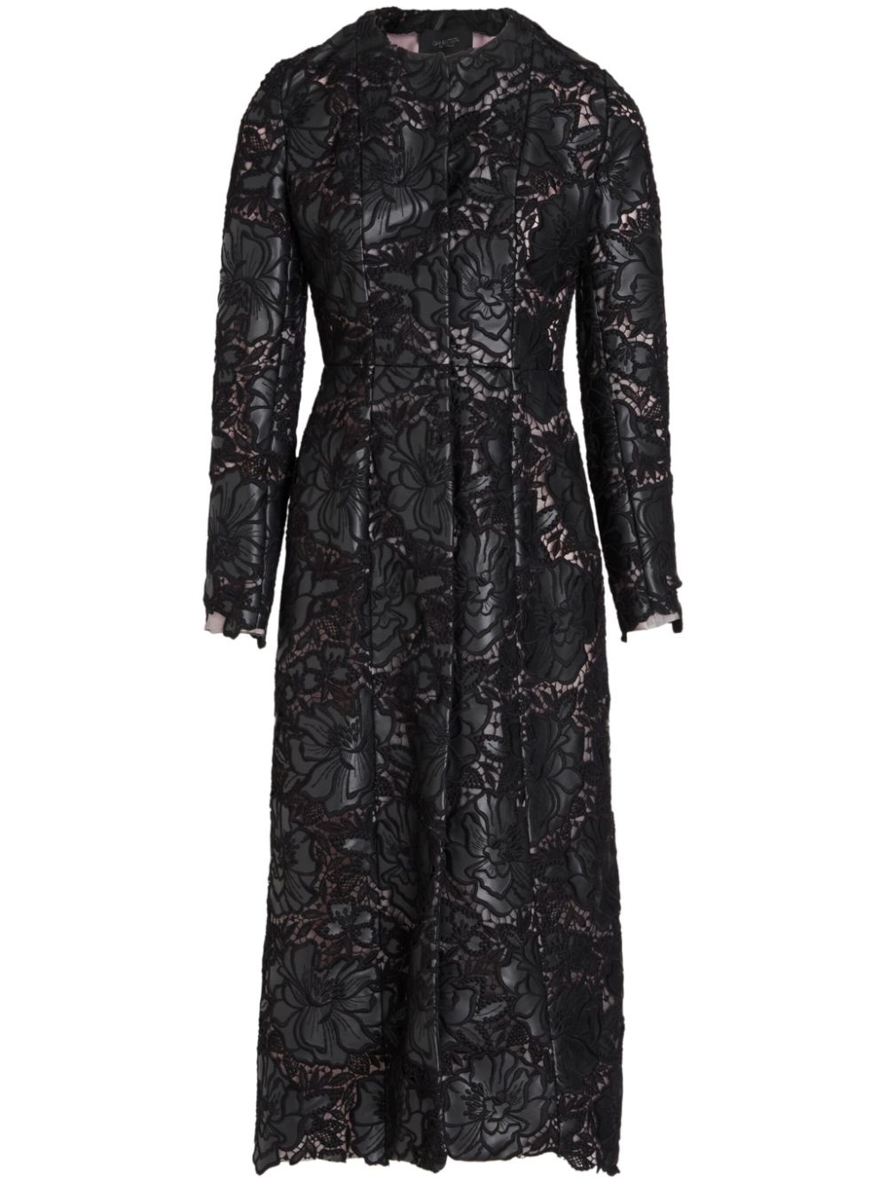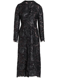 embroidered-design single-breasted coat Highlights - Black - Embroidered design - Round neck - Concealed front fastening - Long sleeves - Straight hem - Mid-length Made in Italy Composition Polyurethane 44%, Polypropylene 28%, Fabric 28% Washing instructions Dry Clean Only