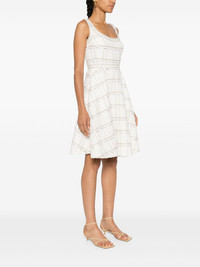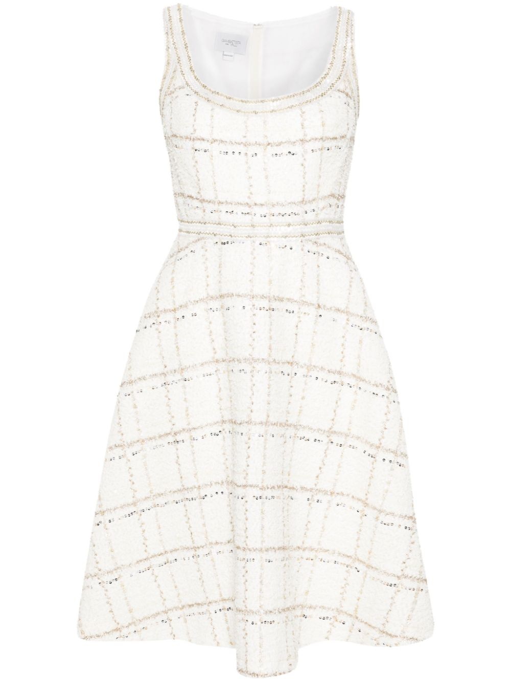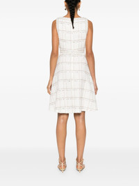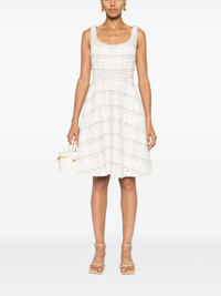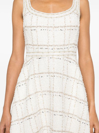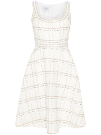 flared boucle mini dress Highlights - White/gold-tone - Boucle construction - Metallic threading - Sequin embellishment - Square neck - Sleeveless - Two side inset pockets - Flared skirt - Thigh-length - Full lining - Straight hem - Concealed rear zip fastening Made In Italy Composition Outer: Polyamide 73%, Virgin Wool 13%, Polyester 8%, Cotton 2%, Polyimide 2% Lining: Silk 100% SIZE & FIT Model measurements Height 5 ft 10 in(1.78 m) Bust/Chest 33.07 in(84 cm) Hips 36.61 in(93 cm) Waist 24.8 in(63 cm) FittingInformation Designed for a close fit at the chest and waist with a loose fit at the hip Made from a midweight non-stretch fabric This piece fits true to size – take your usual size