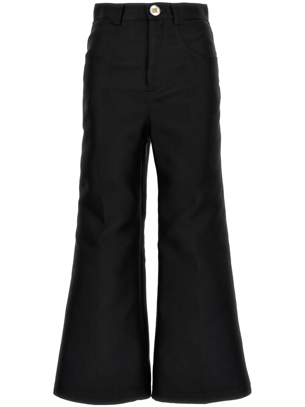 flared trousers Highlights - Black - Concealed fly and button fastening - Belt loops - Two rounded pockets to the sides - Two rear patch pockets Imported Composition Polyester 70%, Silk 30%