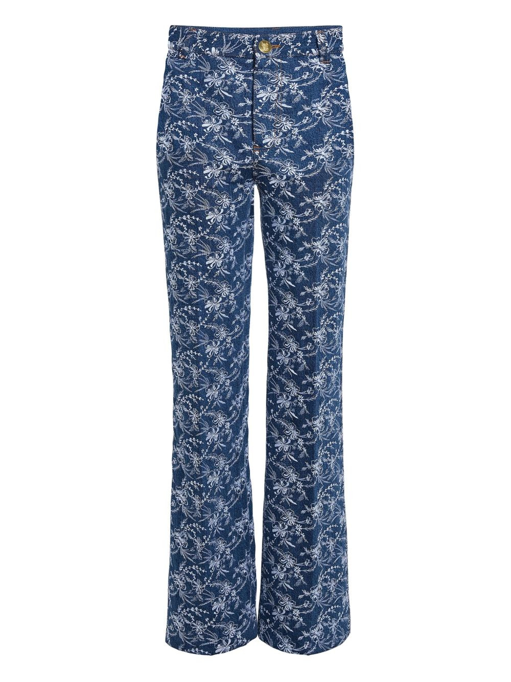 floral-embroidered denim trousers Highlights - Blue - Floral embroidery - Straight leg - High rise - Button fly Made in Italy Composition Cotton 100% Washing instructions Read Manufacturer Guidelines