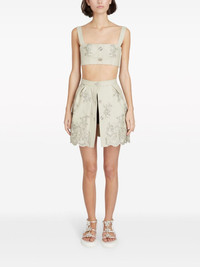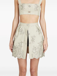 floral-jacquard high-waist miniskirt Reflecting its whimsical aesthetic, Giambattista Valli presents this miniskirt. Adorned with a floral jacquard motif, this romantic piece is finished with a scalloped hem. Highlights - Beige - Cotton blend - Floral detail - High waist - Front button fastening - Scallop hem Made in Italy Composition Cotton 50%, Viscose 40%, Polyester 10% Washing instructions Dry Clean Only