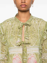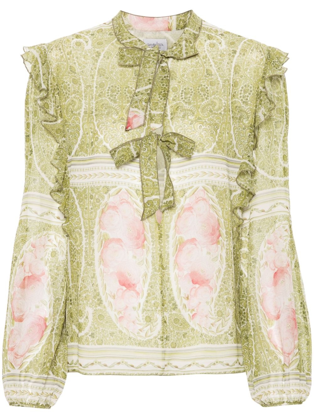 floral-print blouse Highlights - Apple green/white - Silk - All-over floral print - Pussy-bow collar - Keyhole neck - Ruffled trim - Long puff sleeves - Partial lining - Straight hem Made in Italy Composition Outer: Silk 100% Lining: Silk 100% SIZE & FIT Model measurements Height 5 ft 10 in(1.78 m) Bust/Chest 32.67 in(83 cm) Hips 35.43 in(90 cm) Waist 23.22 in(59 cm) Measurement CHEST 37.79 in(96 cm) SLEEVE LENGTH 24.4 in(62 cm) HIPS 37.79 in(96 cm) LENGTH 24.4 in(62 cm) WAIST 37.79 in(96 cm) FittingInformation Designed for a relaxed fit, this piece allows for comfort and movement when worn The tie fastening gives an adaptable and personalised fit Made from a lightweight non-stretch fabric