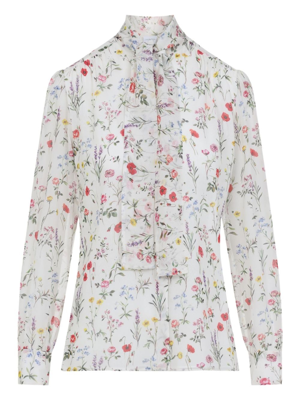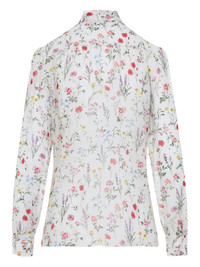 floral-print shirt Highlights - White - Floral print - High neck - Button front - Long sleeves - Ruffle detailing Imported Composition Silk 100%