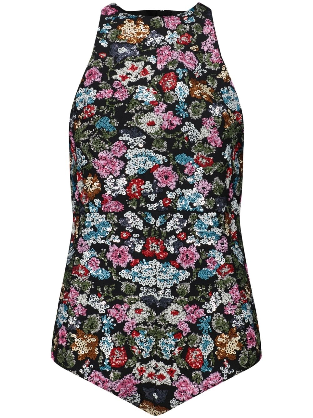 floral sequined bodysuit This Giambattista Valli bodysuit is adorned with intricate floral embroideries and glistening sequins, creating a captivating look. Its halterneck design highlights the shoulders, elevating the design. Highlights - Black/multicolour - All-over floral embroidery - Sequin design - Halterneck - Sleeveless - Just a reminder that this piece must be tried on over your own garments. Made in Italy Composition Polyamide 68%, Viscose 32% Washing instructions Dry Clean Only