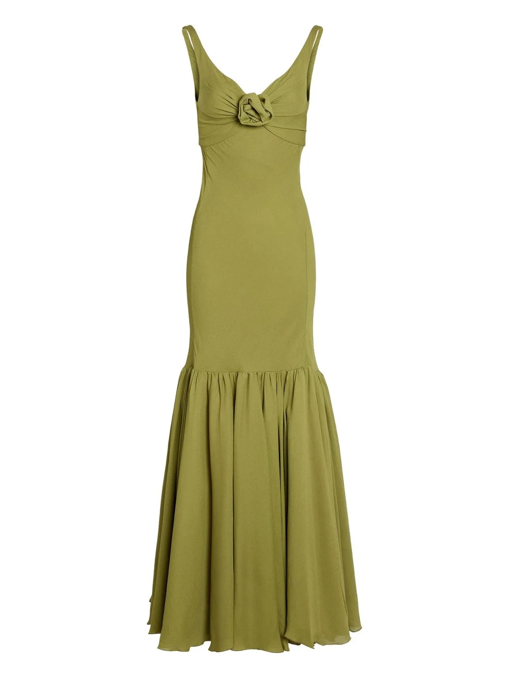 flower-detail flared maxi dress Highlights - Olive green - Flower detail - Flared hem - Sleeveless - Zip fastening Made in Italy Composition Viscose 100% Washing instructions Dry Clean Only