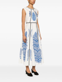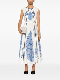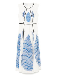 foral-print midi dress Highlights - White - Concealed rear hook and zip fastening - Round neck - Sleeveless - Flared Made in Italy Composition Lining: Cotton 100% Outer: Cotton 100% SIZE & FIT Model measurements Height 5 ft 10 in(1.78 m) Bust/Chest 32.67 in(83 cm) Hips 35.43 in(90 cm) Waist 23.22 in(59 cm) FittingInformation Designed for a close fit at the chest and waist with a loose fit at the hip Made from a midweight non-stretch fabric