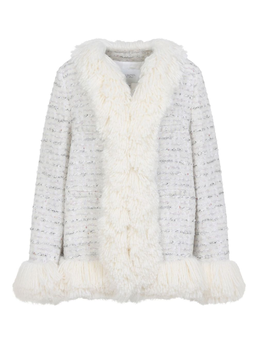 fur-trim coat Highlights - Ivory - Faux-fur trim - Textured finish - Long sleeves - Straight hem Imported Composition Wool 33%, Polyamide 26%, Polyethylene 16%, Cotton 10%, Viscose 7%, Metallic Fibre 2%, Acrylic 2%, Silk 2%, Mohair 2% Washing instructions Read Manufacturer Guidelines