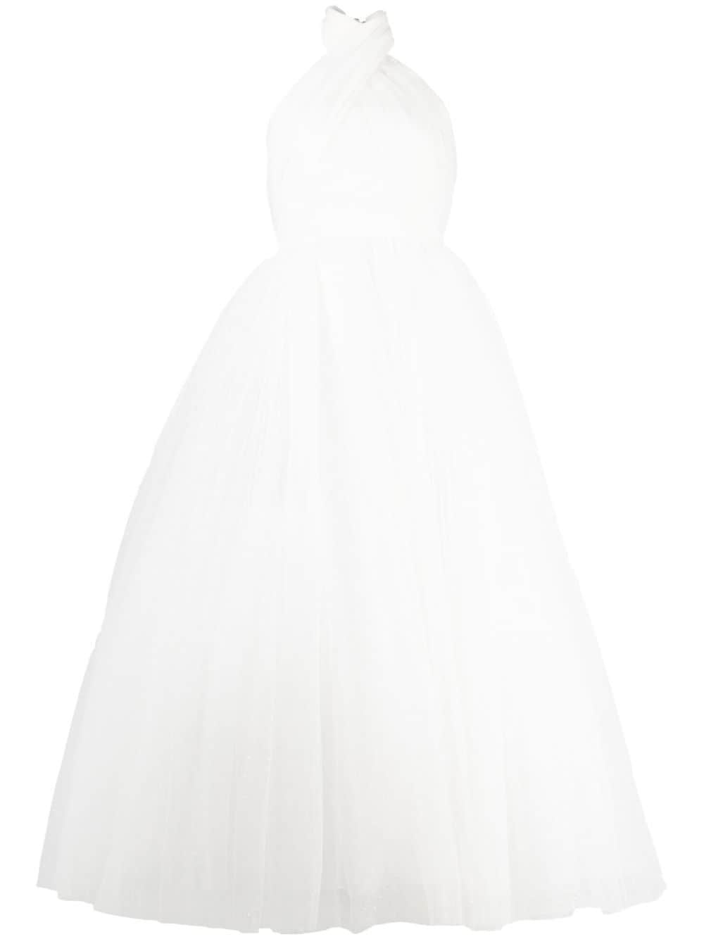 halterneck tulle dress Realised in an ivory-white hue, this tulle dress is a fine demonstration of Giambattista Valli's effortless style, thanks to a sophisticated halterneck silhouette that is complemented by an elegant flared skirt. Made in Italy Composition Lining: Polyester 100%, Silk 100% Outer: Polyamide 100% SIZE & FIT Model measurements Height 5 ft 11 in(1.8 m) Bust/Chest 31.88 in(81 cm) Hips 35.03 in(89 cm) Waist 24.01 in(61 cm) FittingInformation This piece fits true to size. We recommend you get your regular size Designed for a close fit at the bust and waist, but loose at the hip Made with a mid-weight non-stretch fabric Washing instructions Dry Clean Only