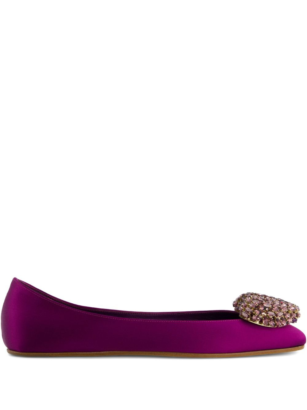 heart-embellished satin ballet flats Highlights - Purple - Satin upper - Crystal-embellished heart - Square toe - Flat sole - Slip-on style Made in Italy Composition Outer: Viscose 72%, Silk 28% Sole: Calf Leather 100% Lining: Calf Leather 100%