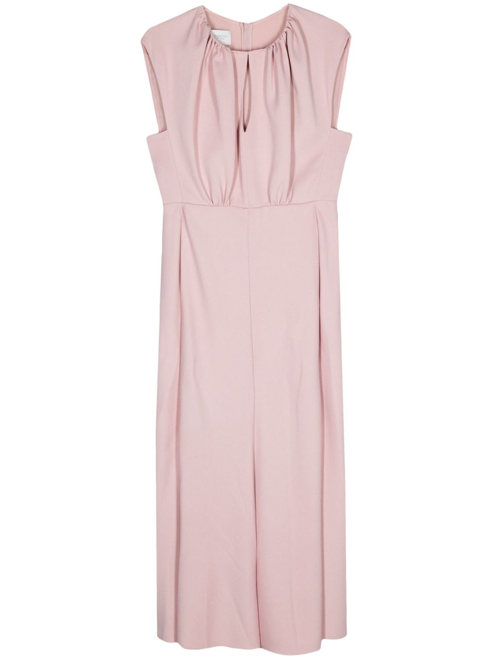 keyhole-neck gown Highlights - Rose quartz pink - Crepe texture - Keyhole neck - Gathered neckline - Concealed rear hook and zip fastening - Sleeveless - A-line skirt - Two side inset pockets - Straight hem - Long length - Silk lining Made in Italy Composition Silk 100%, Viscose 97%, Elastane 3% Washing instructions Dry Clean Only