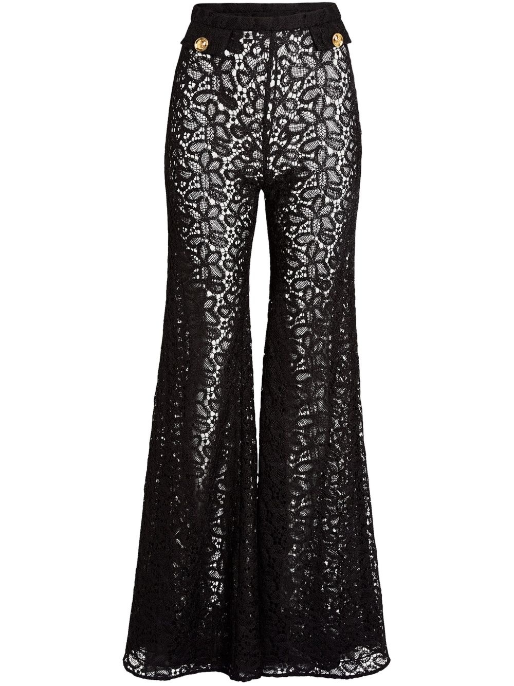 lace flared trousers Highlights - Black - Elasticated waistband - Two front flap pockets - Embossed gold-tone buttons Made in Italy Composition Polyester 100%