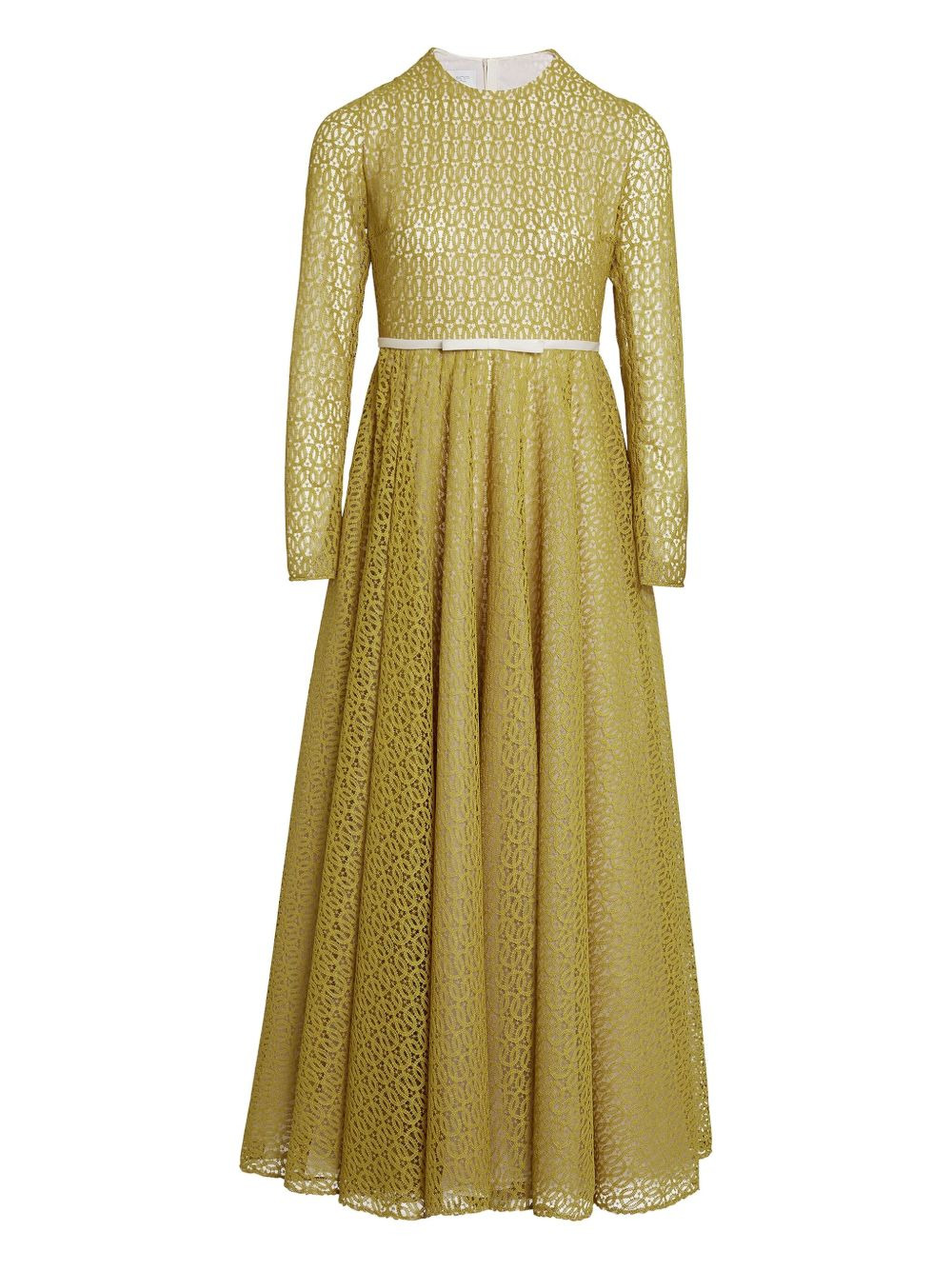 long macrame lace dress Highlights - Mustard yellow - Macrame lace - Long sleeves - Round neck - Pleated skirt Made in Italy Composition Polyester 100% Washing instructions Read Manufacturer Guidelines