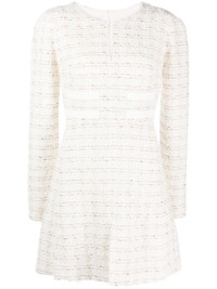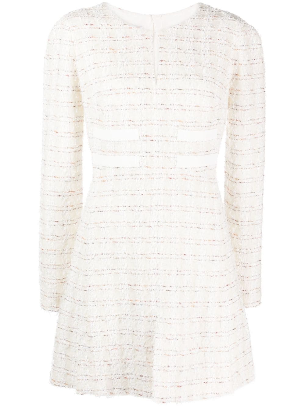 long-sleeve tweed minidress Giambattista Valli's elegant style is evidenced by the tweed construction of this minidress. The thigh-length piece arrives in white and beige tones while boasting a silhouette-defining crew neck. Highlights - White - Wool-cotton blend - Tweed - Horizontal stripe pattern - Round neck - Keyhole neck - Front slit - Long sleeves - Concealed rear zip fastening - Thigh-length - Straight hem Made in Italy Composition Silk 100%, Acetate 50%, Viscose 50%, Wool 42%, Cotton 27%, Polyamide 14%, Polyester 11%, Acrylic 3%, Polyurethane 3% SIZE & FIT Model measurements Height 5 ft 10 in(1.78 m) Bust/Chest 31.49 in(80 cm) Hips 36.22 in(92 cm) Waist 25.59 in(65 cm) Measurement CHEST 34.64 in(88 cm) HIPS 36.22 in(92 cm) LENGTH 34.64 in(88 cm) WAIST 28.34 in(72 cm) FittingInformation Designed for a slim fit that sits just away from the body offering a close yet comfortable fit Made from a midweight non-stretch fabric This piece fits true to size – take your usual size Washing instructions Dry Clean Only
