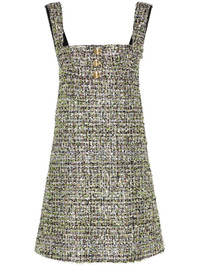 lurex mini dress Highlights - Black/multicolour - Tweed - Lurex detailing - Concealed side hook and zip fastening - Square neck - Decorative button detailing - Sleeveless - Built-in underwire bra - Full lining - Straight hem - Thigh-length Made in Italy Composition Outer: Cotton 100%, Polyamide 38%, Polyester 31%, Acrylic 14%, Viscose 11% Lining: Acetate 75%, Silk 25% SIZE & FIT Model measurements Height 5 ft 9 in(1.76 m) Bust/Chest 31.88 in(81 cm) Hips 35.43 in(90 cm) Waist 24.8 in(63 cm) FittingInformation Designed for a slim fit that sits just away from the body offering a close yet comfortable fit Made from a midweight non-stretch fabric