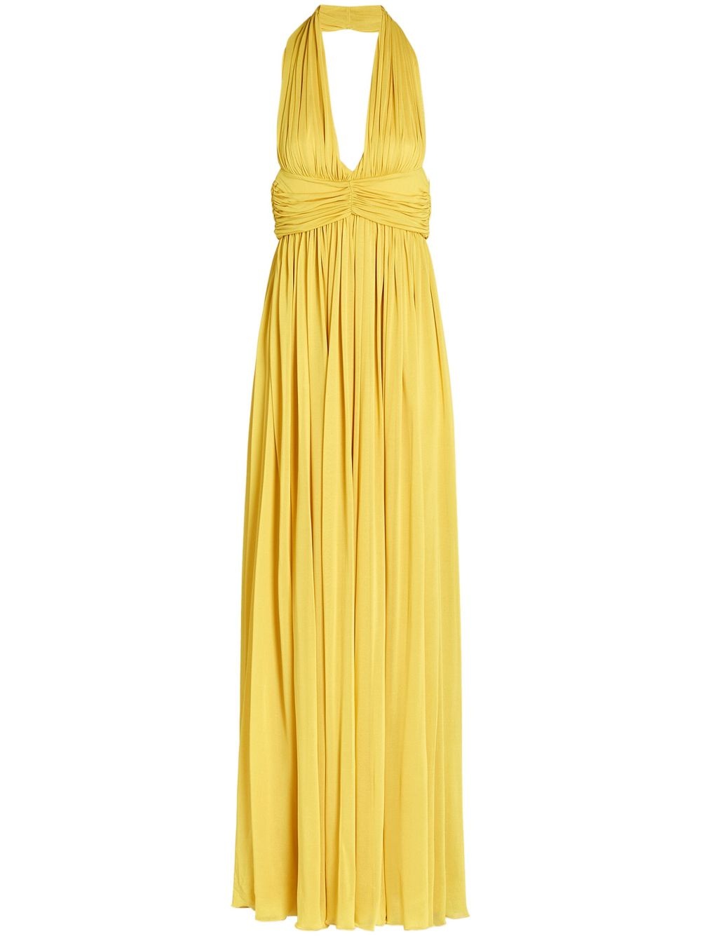 open-back maxi dress Highlights - Lemon yellow - Concealed rear zip fastening - Two side slit pockets - Halterneck - Pleated skirt Made in Italy Composition Viscose 80%, Silk 20% Washing instructions Dry Clean Only