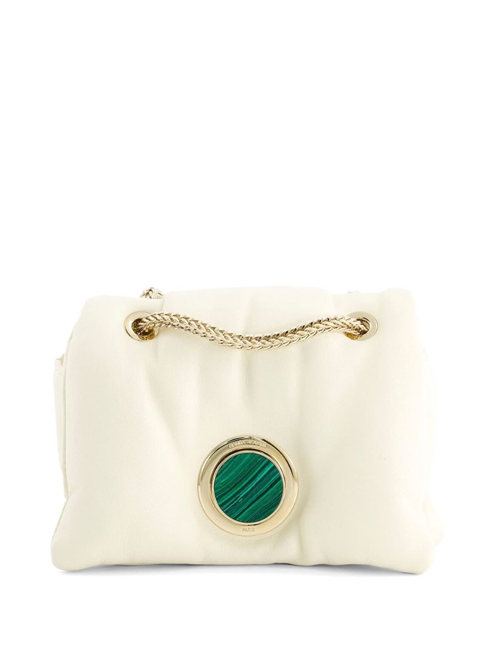 padded shoulder bag Giambattista Valli creates a relaxed yet sophisticated feel on this shoulder bag through a padded construction and gold-tone hardware detailing at the front. Highlights - Off-white - Leather - Padded design - Foldover top - Main compartment - Chain-link shoulder strap - Gold-tone hardware Made in Italy Composition Outer: Leather 100% SIZE & FIT Measurement DEPTH 3.54 in(9 cm) HEIGHT 6.29 in(16 cm) WIDTH 7.48 in(19 cm) Washing instructions Do Not Wash/Do Not Dry Clean