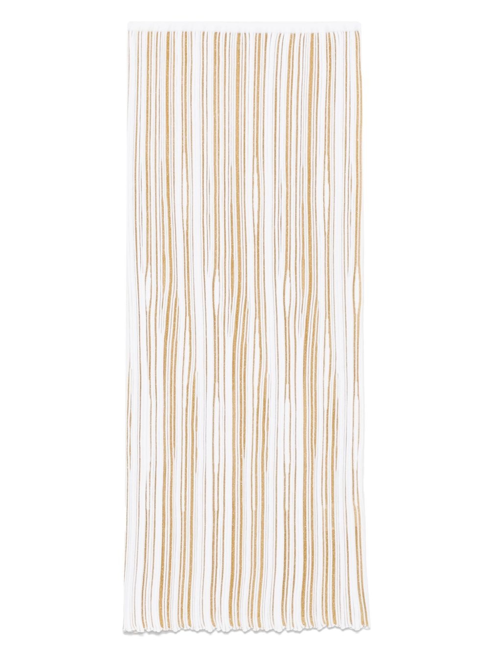 ribbed midi skirt Highlights - White - Elasticated waistband - Metallic threading Made in Italy Composition Viscose 64%, Polyester 30%, Polyamide 6% SIZE & FIT Model measurements Height 5 ft 11 in(1.8 m) Bust/Chest 32.67 in(83 cm) Hips 35.82 in(91 cm) Waist 25.98 in(66 cm) FittingInformation This midi-length skirt is intended to be worn just below the waist Made with a midweight knit, this piece offers some stretch Washing instructions Hand Wash