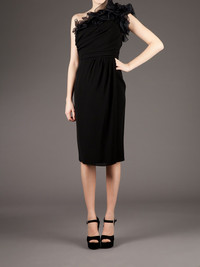 ruffled one-shoulder dress Black silk-blend sleeveless one-shoulder dress from Giambattista Valli featuring an asymmetrical neckline, ruffled detailing to the front and sleeve, draping at the front, a fitted waist and a knee length. Made in Italy Composition Silk 100%, Viscose 100% Washing instructions Dry Clean Only