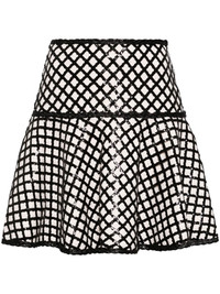 sequined boucle skirt Highlights - White/black - Cotton blend - Boucle construction - Check pattern - Sequin embellishment - Flared skirt - Concealed side zip fastening - Silk lining Made in Italy Composition Outer: Cotton 89%, Acetate 5%, Polyamide 3%, Viscose 3% Lining: Silk 100% SIZE & FIT Model measurements Height 5 ft 10 in(1.77 m) Bust/Chest 27.95 in(71 cm) Hips 34.64 in(88 cm) Waist 22.83 in(58 cm) FittingInformation This mini-length skirt is intended to be worn high on the waist Made from a midweight non-stretch fabric