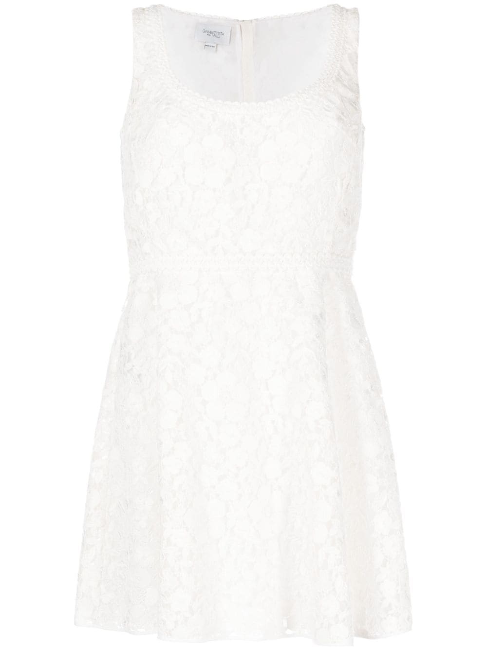 sleeveless lace mini dress Giambattista Valli's love for florals is made clear in the floral lace design of this mini dress. Cut in an elegant A-line silhouette, this version arrives in a fresh white tone. Highlights - White - Lace detailing - Square neck - Rear zip fastening - Sleeveless - A-line - Straight hem - Thigh-length Made in Italy Composition Body: Polyester 68%, Cotton 32% Outer: Polyester 68%, Cotton 32% Lining: Cotton 100%, Silk 100% SIZE & FIT Model measurements Height 5 ft 10 in(1.78 m) Bust/Chest 30.31 in(77 cm) Hips 34.64 in(88 cm) Waist 24.01 in(61 cm) FittingInformation Designed for a close fit at the chest and waist with a loose fit at the hip Made from a midweight non-stretch fabric This piece fits true to size – take your usual size Washing instructions Dry Clean Only