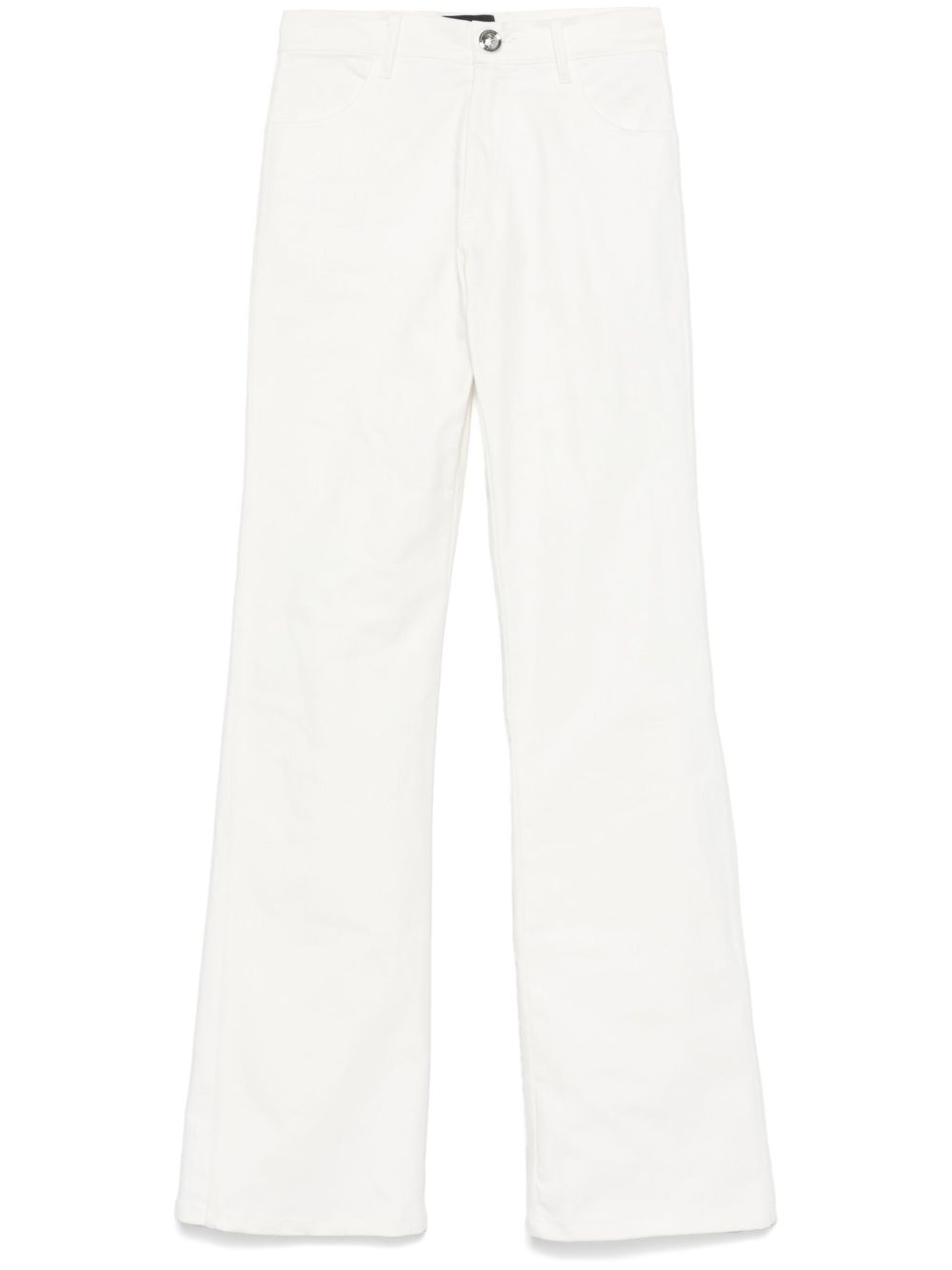 straight-leg trousers Highlights - White - Cotton blend - Front button and zip fastening - Belt loops - Two diagonal pockets to the sides - Two rear patch pockets - Straight leg Made in Italy Composition Outer: Cotton 98%, Elastane 2% Lining: Cotton 100% SIZE & FIT Model measurements Height 5 ft 10 in(1.78 m) Bust/Chest 33.85 in(86 cm) Hips 36.61 in(93 cm) Waist 26.77 in(68 cm) Measurement HIPS 35.43 in(90 cm) Hem Width 9.84 in(25 cm) WAIST 29.92 in(76 cm) FittingInformation Designed with a flared hem, these trousers allow for a close fit at the waist with a slim fit over the leg and widening towards the hem Constructed from stretch denim, this piece offers a stretch fit with durability