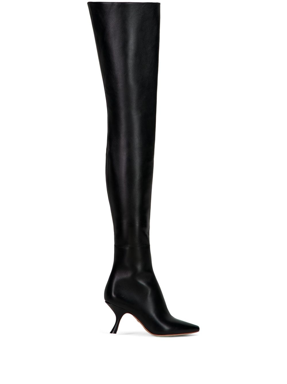 thigh-length boots Highlights - Black - Lambskin - Polished finish - Side zip fastening - 75mm mid sculpted heel - Thigh-length - Pointed toe - Leather sole Made in Italy Composition Outer: Lambskin 100%, Leather 100% Sole: Calf Leather 100% Lining: Calf Leather 100% SIZE & FIT Measurement HEEL 2.95 in(7.5 cm)