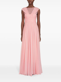 wrapped silk georgette dress Highlights - Pink - Silk - Georgette - Wrap design - Twist detailing - Pleat detailing - Mesh panelling - Boat neck - Sleeveless - Rear zip fastening - Pleated skirt - Full-length Made in Italy Composition Silk 100% Washing instructions Dry Clean Only