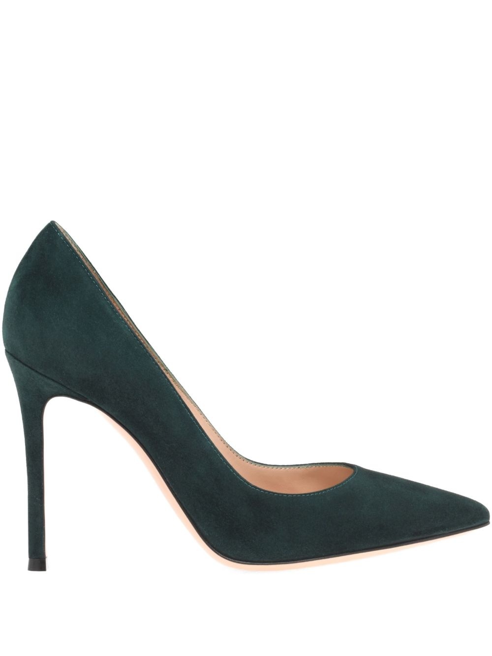 105 leather pumps Highlights - Dark green - Slip-on style - High stiletto heel - Branded insole - Pointed toe Made in Italy Composition Sole: Calf Leather 100% Outer: Calf Suede 100% Lining: Calf Leather 100% SIZE & FIT Measurement HEEL 3.93 in(10 cm)
