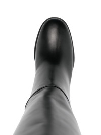 60mm Santiago boots Highlights - Black - Calf leather - Smooth grain - 60mm block heel - Slip-on style - Knee-length - Round toe - Branded leather insole - Leather outsole Made in Italy Composition Outer: Calf Leather 100% Sole: Calf Leather 100% Lining: Calf Leather 100% SIZE & FIT Measurement CIRCUMFERENCE 14.17 in(36 cm) HEEL 2.75 in(7 cm) HEIGHT 16.14 in(41 cm) Sole height 0.78 in(2 cm)