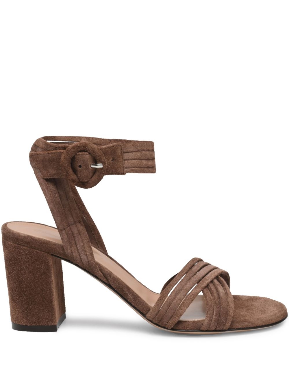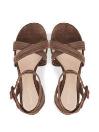 70mm Lianne sandals Highlights - Chestnut brown - Buckle-fastening ankle strap - Crossover strap detail - Branded footbed - Round open toe Made in Italy Composition Lining: Calf Leather 100% Outer: Suede 100% Sole: Calf Leather 100% SIZE & FIT Measurement HEEL 2.75 in(7 cm)