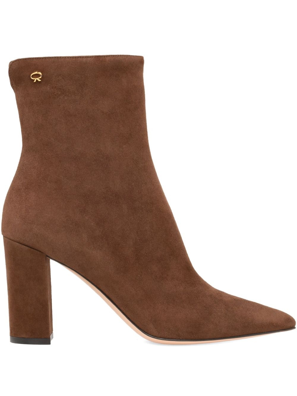 85mm Lyell pointed-toe ankle boots Highlights - Brown - Suede - Pointed toe - Block heel - Side zip-fastening - Gold-tone logo detail Made in Italy Composition Sole: Leather 100%, Rubber 100% Outer: Suede 100% Lining: Leather 100%