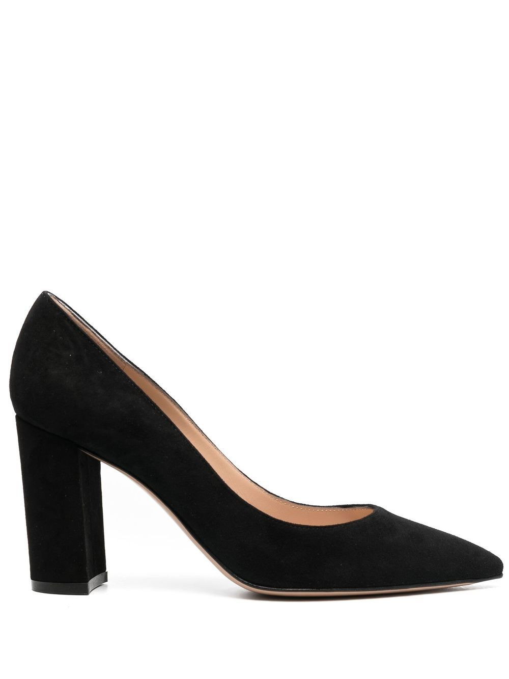 85mm Piper pointed block-heel pumps Highlights - Black - Block heel - Pointed toe - Leather upper - Leather sole - Branded insole Made in Italy Composition Outer: Suede 100% Lining: Calf Leather 100% Sole: Calf Leather 100%, Rubber 100% SIZE & FIT Measurement HEEL 3.74 in(9.5 cm) Sole height 0.39 in(1 cm)