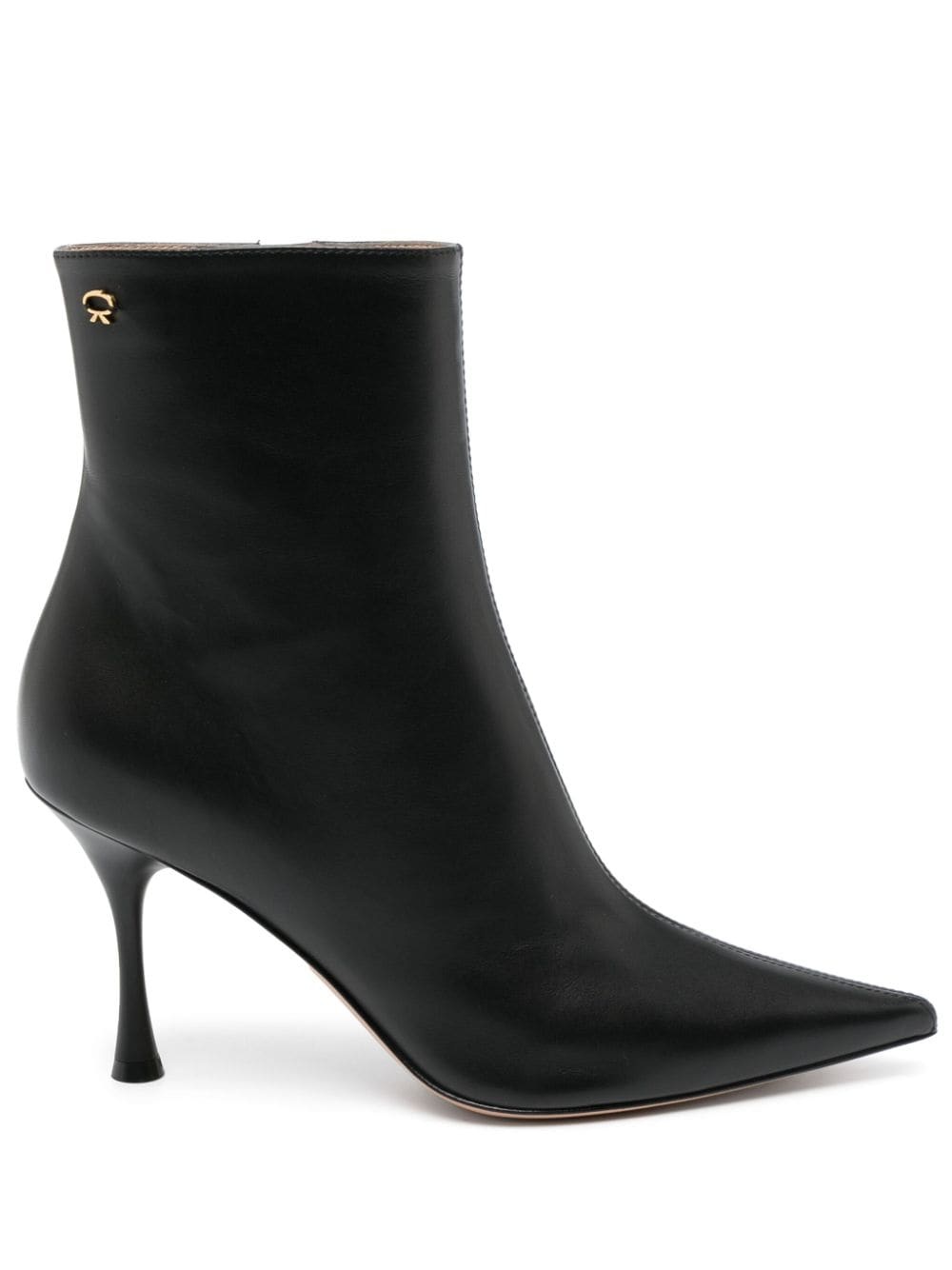 85mm pointy-toe leather boots Highlights - Black - Calf leather - Pointed toe - Gold-tone logo plaque - 85mm - High stiletto heel Made in Italy Composition Outer: Calf Leather 100% Sole: Calf Leather 100% Lining: Calf Leather 100% SIZE & FIT Measurement CIRCUMFERENCE 9.44 in(24 cm) HEEL 3.34 in(8.5 cm) HEIGHT 5.51 in(14 cm)
