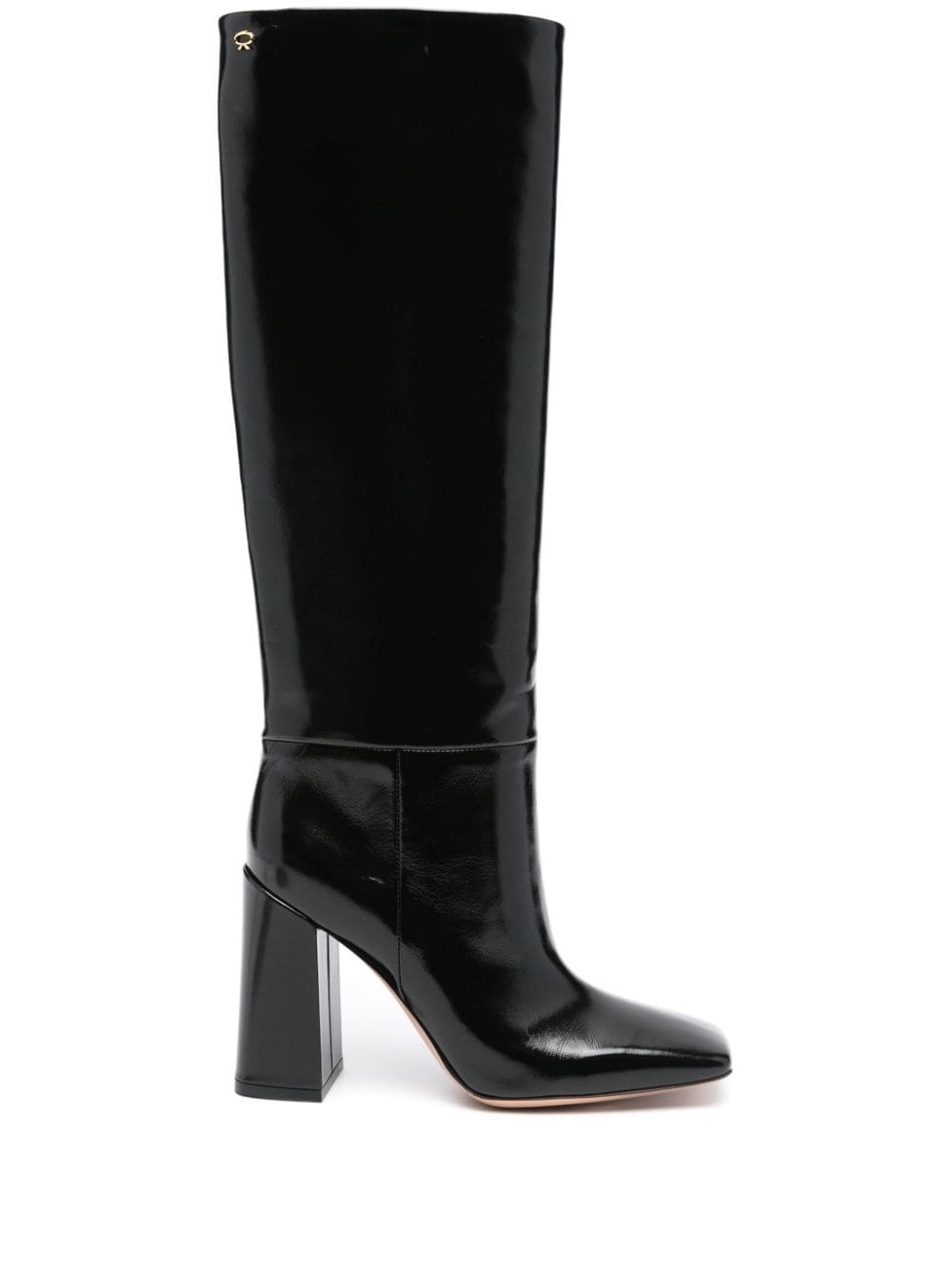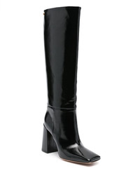 85mm Santiago boots Highlights - Black - Calf leather - Square toe - Gold-tone signature ribbon plaque - Knee-high - Branded leather insole - Leather lining - 85mm high block heel - Leather sole - Slip-on style - This piece comes complete with a protective dust bag. Made in Italy Composition Sole: Calf Leather 100% Outer: Calf Leather 100% Lining: Calf Leather 100% SIZE & FIT Measurement CIRCUMFERENCE 12.99 in(33 cm) HEEL 3.93 in(10 cm) HEIGHT 14.76 in(37.5 cm)