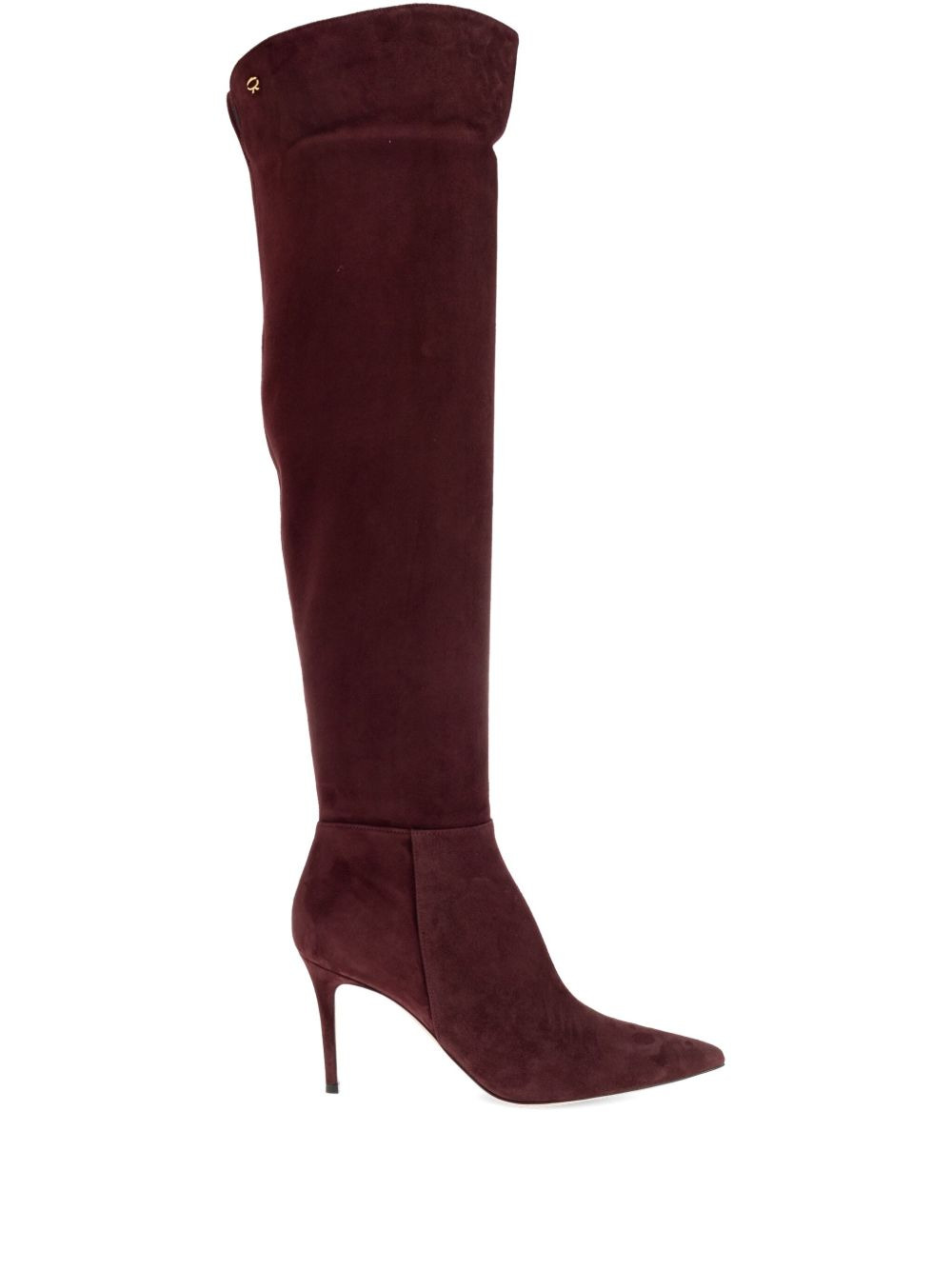 90mm Jules suede pointed-toe boots Highlights - Burgundy - Suede upper - Pointed toe - Over the knee shaft - Stiletto heel - Back zip fastening Made in Italy Composition Outer: Suede 100% Lining: Leather 100% Sole: Leather 100% SIZE & FIT Measurement HEEL 3.54 in(9 cm)