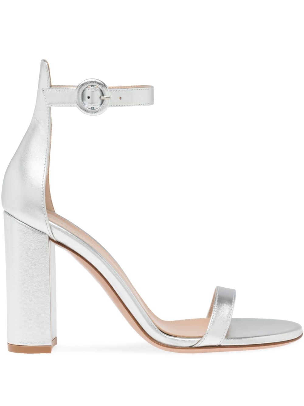95mm leather sandals Highlights - Silver-tone - Ankle strap - Round toe - Branded insole - Block heel Made in Italy Composition Outer: Nappa Leather 100% Lining: Calf Leather 100% Sole: Calf Leather 100% SIZE & FIT Measurement HEEL 3.74 in(9.5 cm)