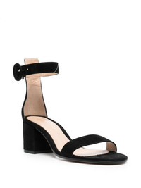 Versilia 60mm suede sandals Considered alluring, feminine and strong, Gianvito Rossi creates collections that speak to his legions of fans; designing footwear with a focus on expert craftsmanship and luxury materials. This pair of black suede Versilia sandals feature a round toe, a 60mm block heel and a side buckle fastening. Highlights - Black - Suede - Buckle-fastening ankle strap - Single toe strap - Branded leather insole - 60mm block heel Made in Italy Composition Suede 100% SIZE & FIT Measurement HEEL 2.36 in(6 cm) CIRCUMFERENCE 7.08 in(18 cm) HEIGHT 3.54 in(9 cm)
