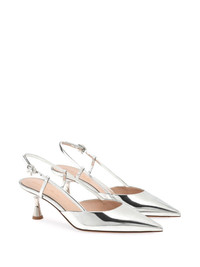 Ascent 55mm leather pumps A futuristic metallic finish elevates the timeless silhouette of Gianvito Rossi's Ascent pumps. They're made in Italy from leather and fitted with an initials-shaped buckle at the ankle. Highlights - Silver-tone - Calf leather - Metallic finish - Buckle-fastening slingback strap - Pointed toe - Branded leather insole - Mid sculpted heel Made in Italy Composition Leather 100% SIZE & FIT Measurement HEEL 2.16 in(5.5 cm)