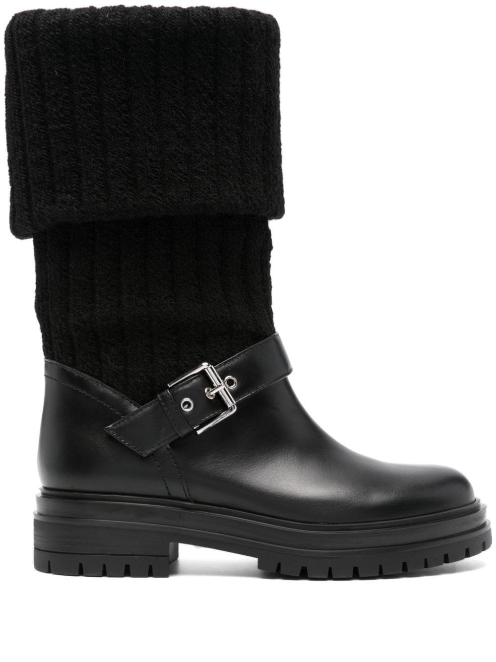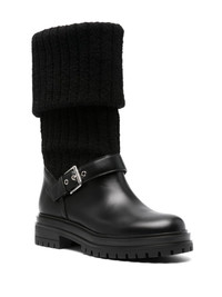 buckle-detail boots Highlights - Black - Calf leather/knitted panels - Decorative buckle detail - Pull-on style - Stacked heel - Mid-calf length - Round toe - Branded leather insole - Ridged rubber sole Made in Italy Composition Leather 100% SIZE & FIT Measurement HEEL 1.57 in(4 cm) HEIGHT 10.62 in(27 cm) Sole height 0.78 in(2 cm)