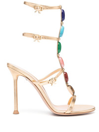 Shanti 105mm gladiator sandals Highlights - Gold-tone - Nappa leather - Metallic effect - Gemstone detailing - Ankle touch-strap fastening - 105mm stiletto heel Made in Italy Composition Outer: Calf Leather 100% Sole: Calf Leather 100% Lining: Leather 100% SIZE & FIT Measurement CIRCUMFERENCE 7.87 in(20 cm) HEEL 4.33 in(11 cm) HEIGHT 5.51 in(14 cm)