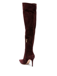 Cuissard 90mm suede boots Highlights - Burgundy - Calf suede - Logo plaque - Pointed toe - Slip-on style - Branded leather insole - 90mm high heel - Leather sole Made in Italy Composition Suede 100% SIZE & FIT Measurement CIRCUMFERENCE 15.74 in(40 cm) HEIGHT 20.86 in(53 cm) HEEL 3.34 in(8.5 cm)