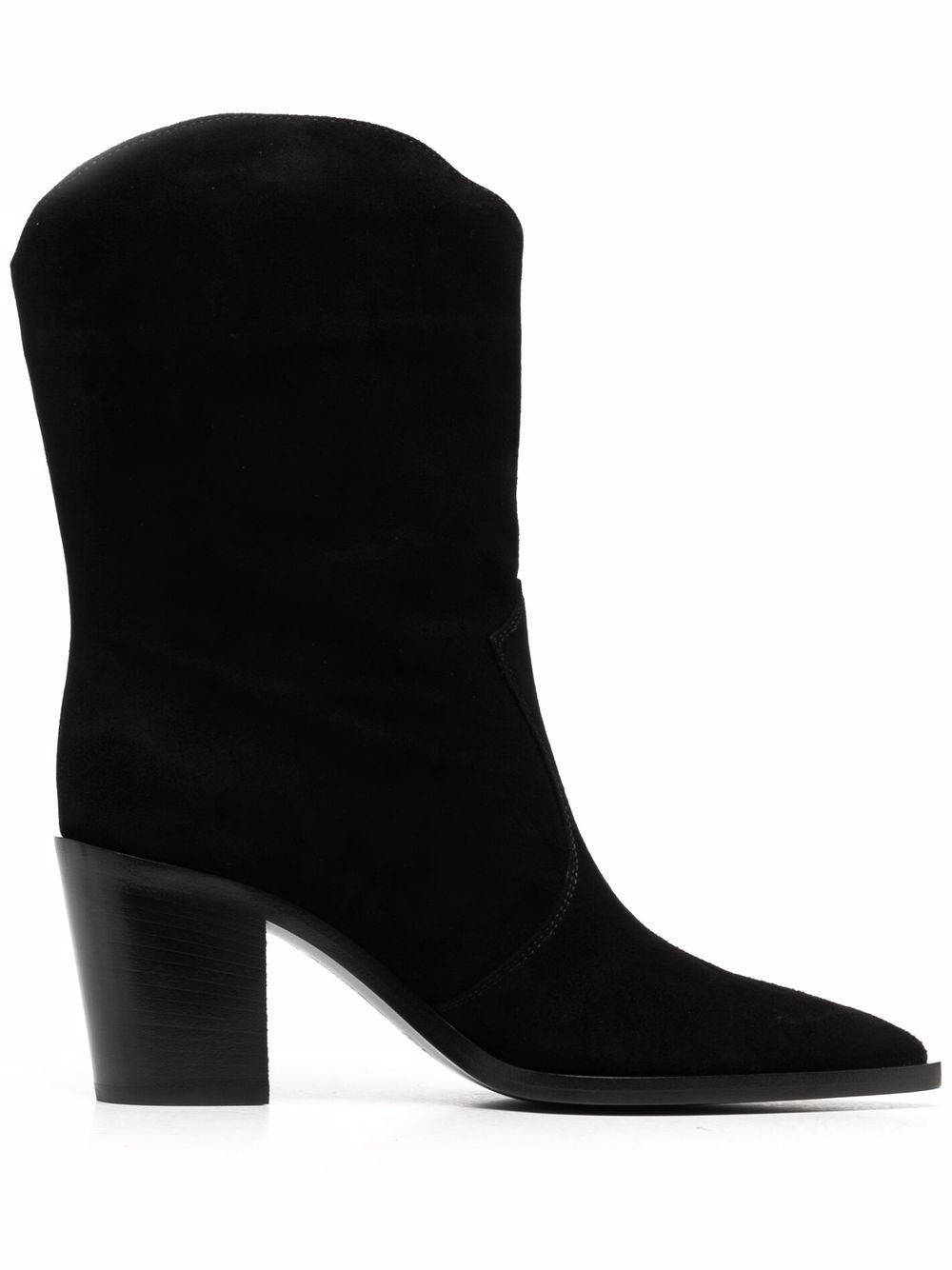 70mm Denver cowboy boots There's nothing like a brand new pair of boots to make you feel like you can conquer the world. Crafted from suede, these Denver ankle boots from Gianvito Rossi are here to ensure you do it in style. Go get them. Highlights - Black - Suede/leather - Pointed toe - Pull-on style - Branded leather insole - 70mm block heel Made in Italy Composition Suede 100% SIZE & FIT Measurement HEEL 2.95 in(7.5 cm) CIRCUMFERENCE 9.44 in(24 cm) Sole height 0.39 in(1 cm) HEIGHT 7.87 in(20 cm)