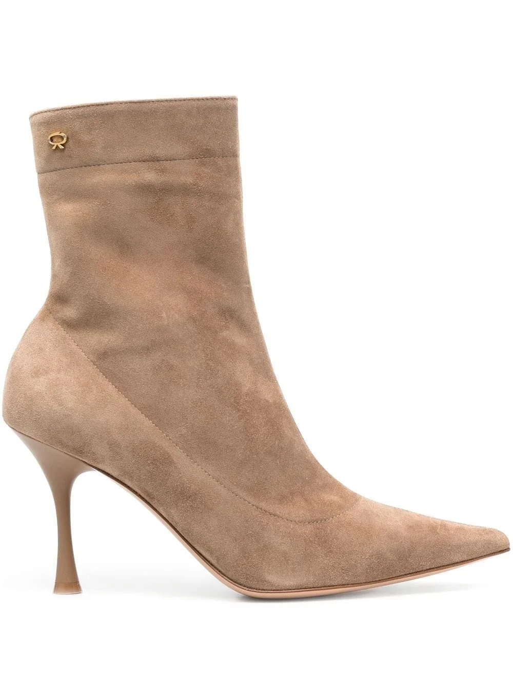 Dunn 85mm suede ankle boots Gianvito Rossi taps into timeless silhouettes and bold colourways for SS23, as shown by this camel brown iteration of the Dunn ankle boots. Made from smooth calf suede in Italy, the pair sits atop a classic stiletto heel. Highlights - Camel brown - Calf suede - Pointed toe - 85mm stiletto heel - Short side zip fastening Made in Italy Composition Suede 100% SIZE & FIT Measurement CIRCUMFERENCE 9.84 in(25 cm) HEEL 3.34 in(8.5 cm) HEIGHT 5.51 in(14 cm)