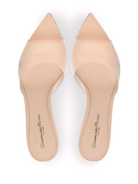 Elle 55mm translucent mules Gianvito Rossi's Elle mules are a balance of sophistication and modernity. Crafted in Italy to a sharp open-toe silhouette, they feature a translucent upper with a frosted appearance that juxtaposes the leather insole and outsole. They are rested atop a demure kitten heel. Highlights - Beige - Translucent design - Open toe - Slip-on style - 55mm kitten heel - Branded leather insole - Leather outsole Made in Italy Composition Other fibres 100% SIZE & FIT Measurement HEEL 2.16 in(5.5 cm)